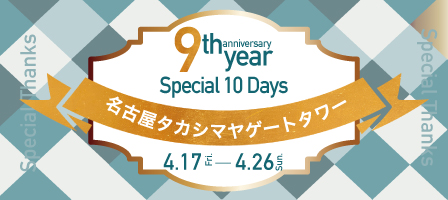 タカシマヤゲートタワーモール店限定で 9周年を記念した「10日間限定」のスペシャル特典をご用意いたしました。