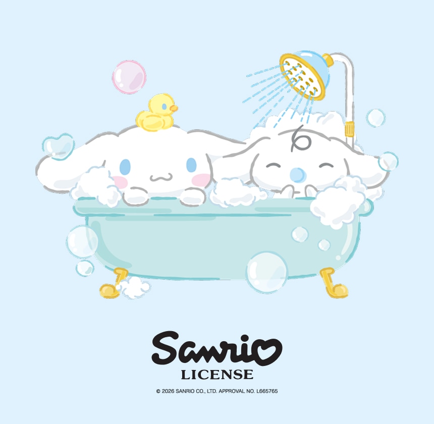 シナモロールと"みるく"がバスタイムを楽しむ様子を描いた、ドリーミーなイラストのコットンバッグ。やさしい世界観が、毎日のお出かけを特別な時間にしてくれます。