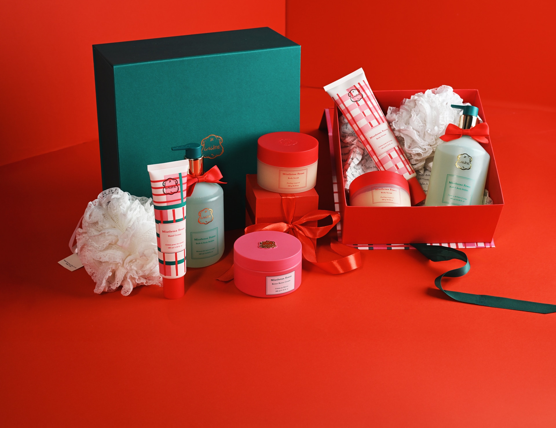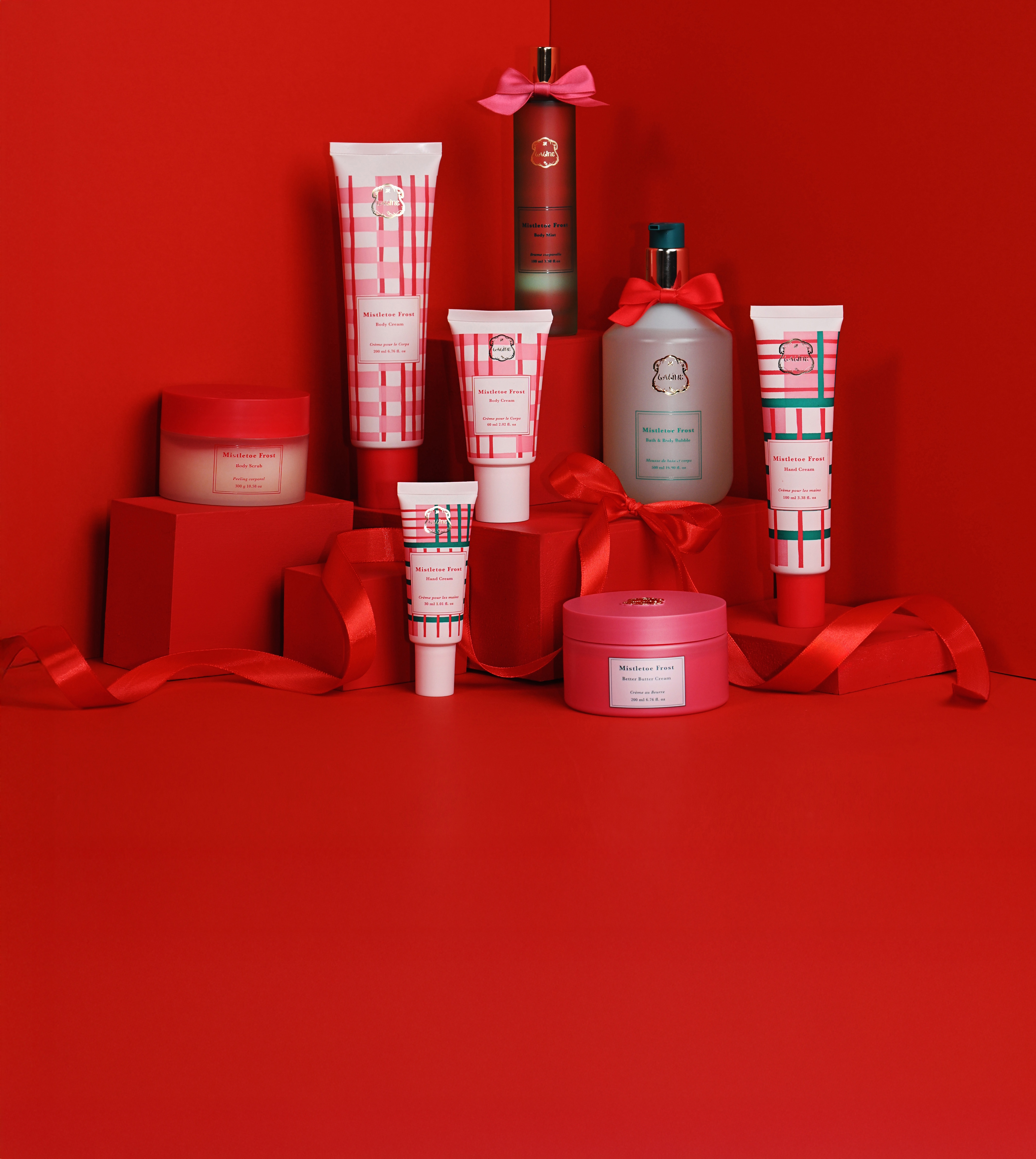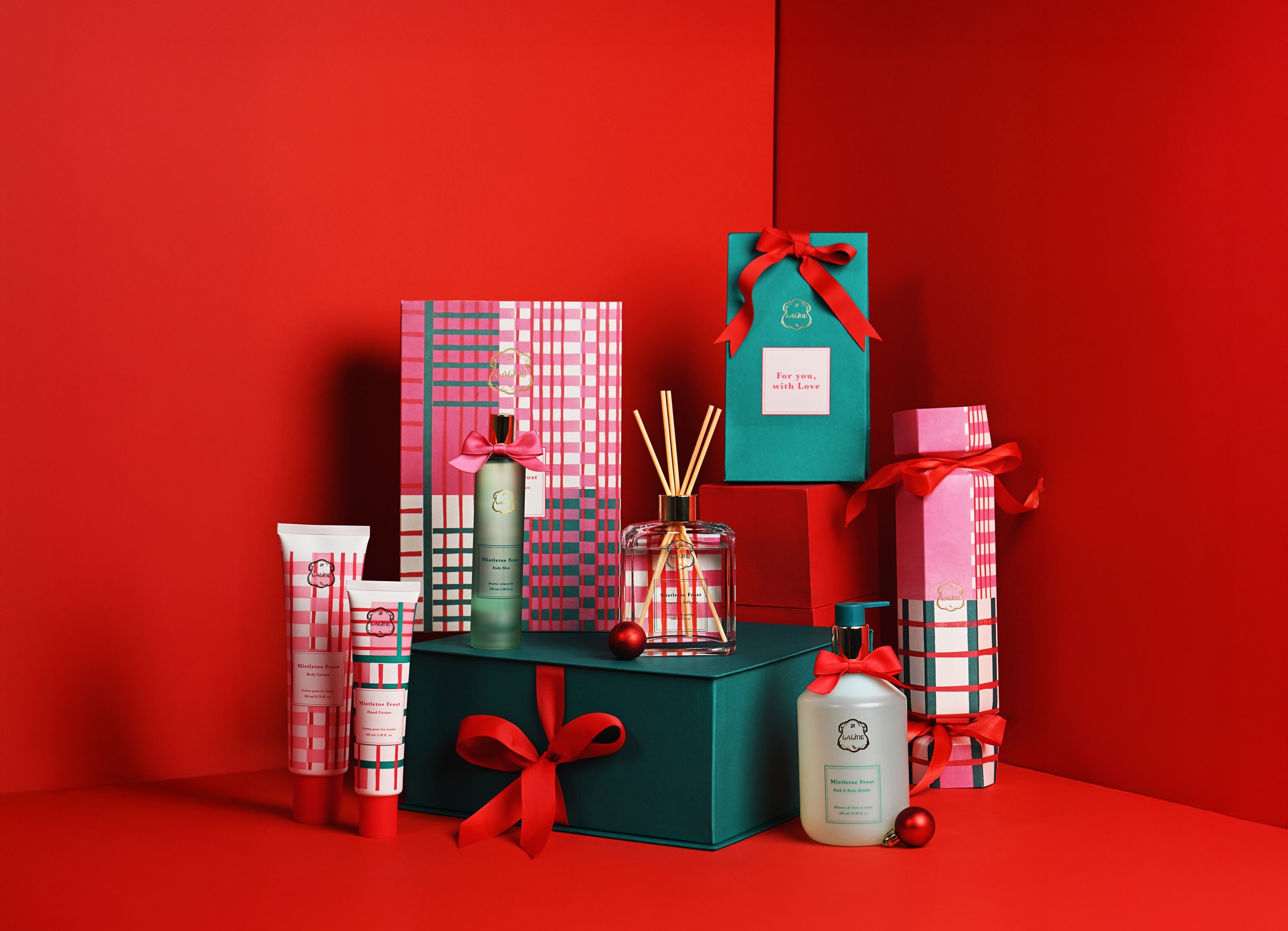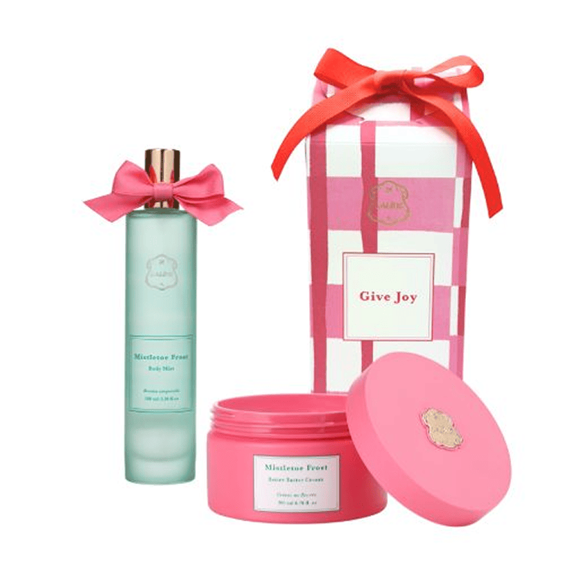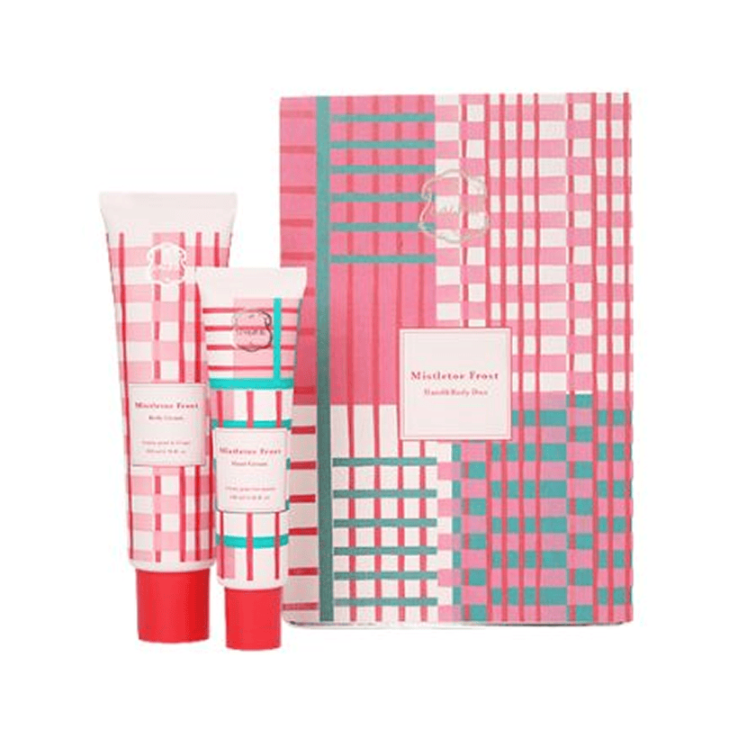 幸運をもたらすミスルトゥ(ヤドリギ)をモチーフに、赤とピンクのチェックで彩られたホリデー限定コレクション第二弾が登場。オレンジとジュニパーが奏でるあたたかな香りが、心までやさしく溶け込み、冬の肌にしっとりとうるおいを届けます。